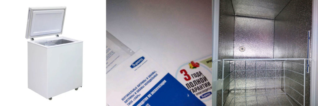Domestic production makes it affordable to purchase a large volume for affordable money. Such a chest is suitable for a large family, where there is a need for the preparation and stock of food for future use. In addition, additional functions are not characteristic of the budget series, there is also a child protection block, temperature indication, as well as an electronic control type.