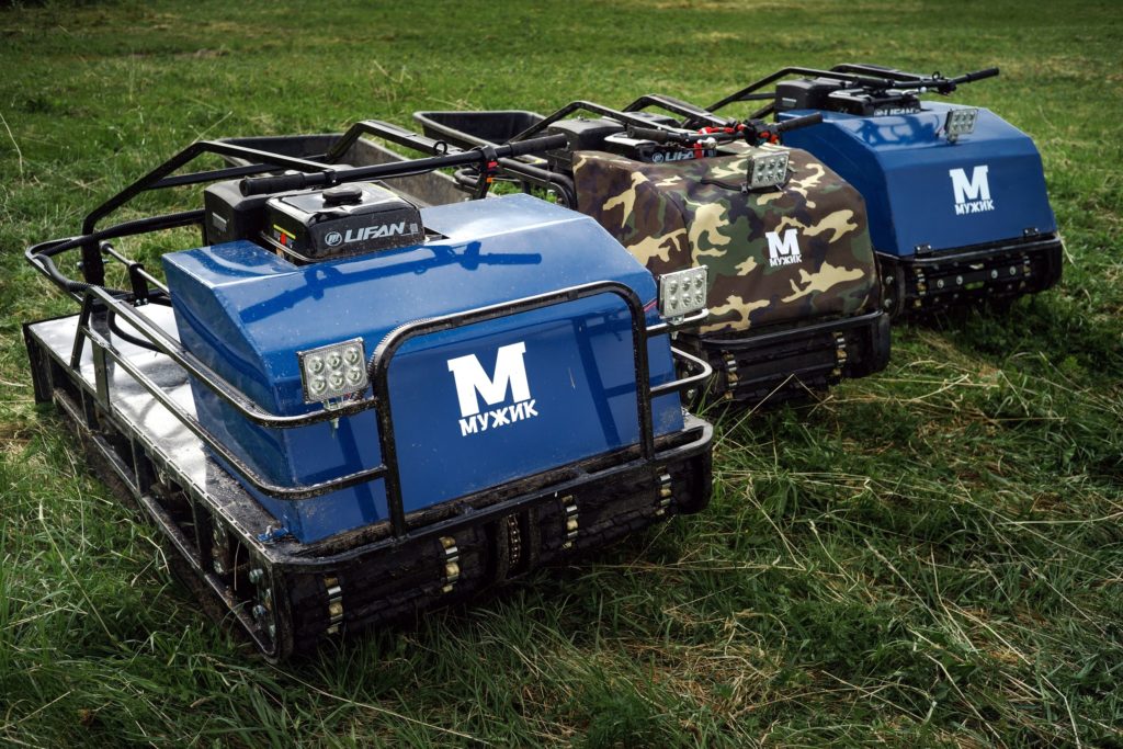 The main advantage of front-wheel drive units is their traction parameters, and due to the center of gravity, which is located in front, the space for interaction with the surface increases. This has a positive effect on the cross-country ability of such motorized dogs. The disadvantage of front-wheel drive units is poor mobility and handling.