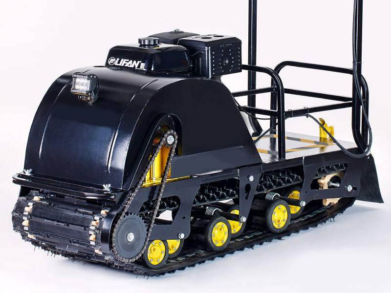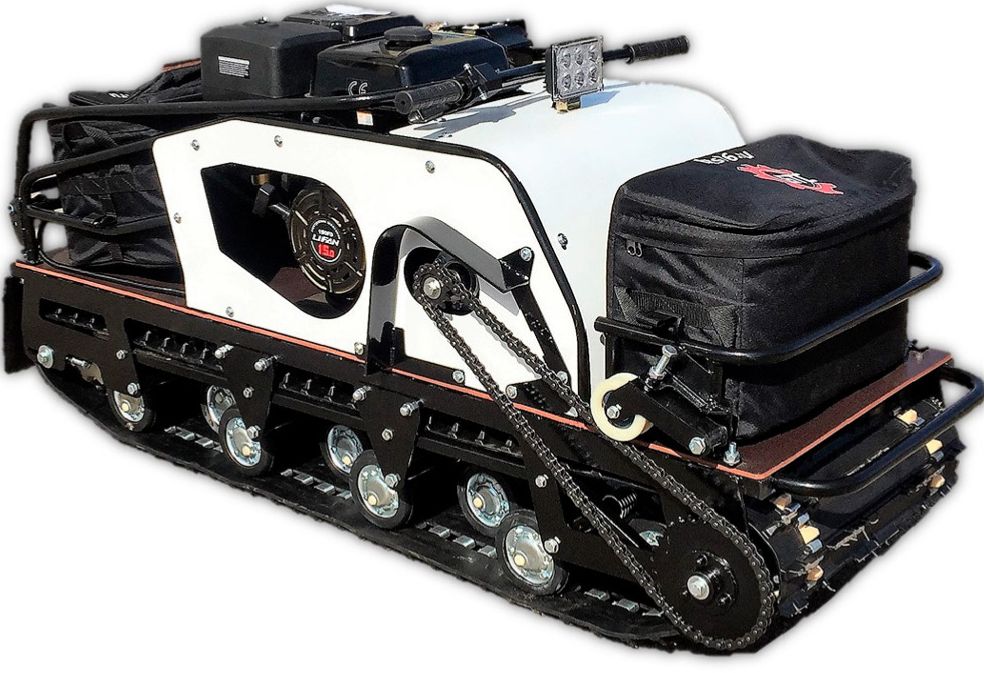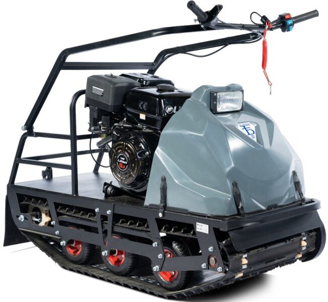 This is a reliable model for transporting goods in deep snow on a sleigh. The weight of the load should not exceed 300 kg. This motorized dog has a motor with a power of 15 horsepower. The manufacturer has equipped the device with a variator gearbox, which, together with the engine, gives the motorized towing vehicle the ability to accelerate to 60 km / h.