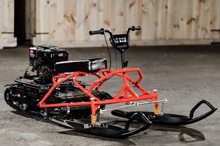 This compact piece of motorcycle looks like a reinforced children's snowmobile with a motor. The model will be an excellent solution for fishermen and hunters, as it easily drives on ice and off-road. Due to its compactness, the equipment can easily fit into the car trunk, of course, disassembled.