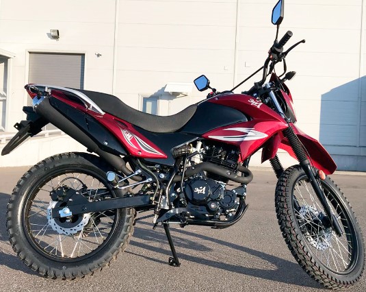 The motorcycle is equipped with a mechanical transmission, a powerful engine and tires that allow you to move on rough terrain (soft, medium soil). Thanks to the inverted telescopic fork, the rider can easily overcome any unevenness (for example, pits). Spoke wheels. The frame is semi-duplex, made of steel. Facing material - durable plastic, resistant to deformation, performs a protective function (does not allow dirt to get inside the equipment). Rear suspension with pendulum monoshock. The steering wheel has a variable section. Ignition system - "CDI". The design is sporty. The size of the bike allows even tall girls to feel comfortable while riding.