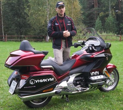 A motorcycle for long journeys. In terms of ride comfort, it is comparable to a business class car. Automatic transmission with two clutches, works smoothly, puts the unit in neutral by itself. There is a handbrake, like a car. Reverse + button press gives autonomous back and forth driving. You can start the "Golda" without a key, by turning the lever, as in a receiver to adjust the sound. The steering wheel is locked in the same way. Wardrobe trunks can be opened without a key. The luggage compartment has a place for storing and transporting your phone, you can leave your helmet without carrying it with you every time. The checkpoint can be completely transferred to manual control. Controllability is comparable to that of a car with an automatic transmission. You can set different driving modes: tourist, sports, city, to save fuel consumption. The anatomical fit of the saddle prevents fatigue on the road.