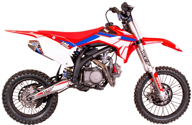 Transport with a YX cylinder 4-stroke engine, equipped with a manual transmission, an air cooling system and a Molkt PZ26 carburetor. Front fork "VOLT V-ONE" 83 centimeters. Traverse - aluminum casting, swingarm made of steel, as well as tubular frame. Rear shock absorber with adjustable rebound damping and compression. The cross-country motorcycle of this series is made in a sporty style, withstands the stress on racing tracks and enduro races.