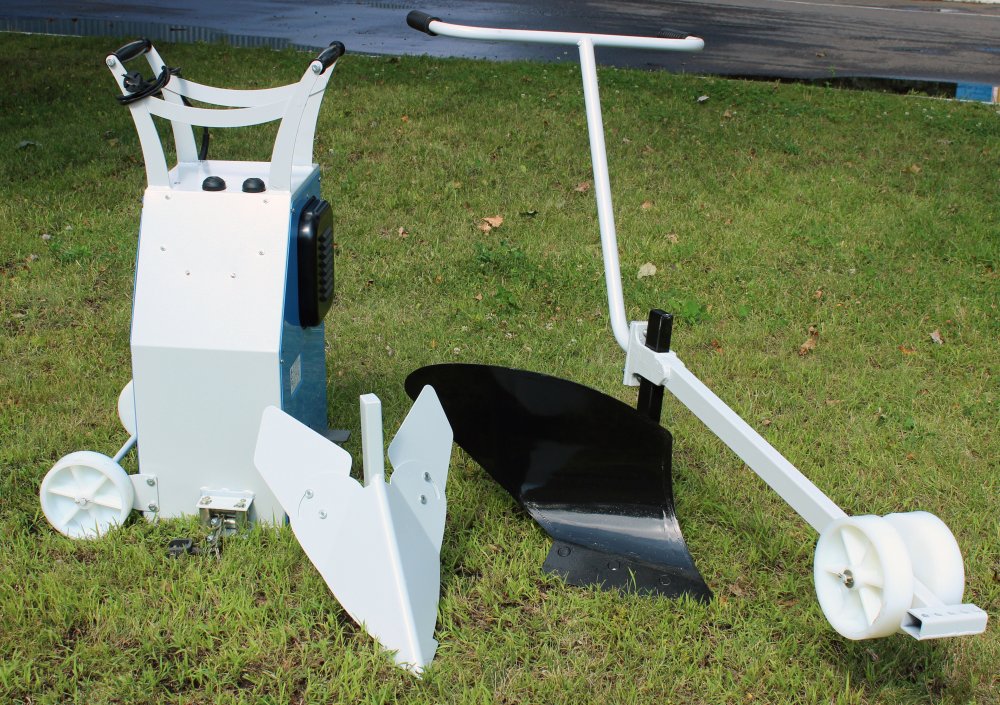 The winch is easy to handle. It is equipped with two types of brakes (automatic and manual). With their help, you can change the engine power and the speed of the cable. The design has teeth that go deep into the ground. The entire platform weighs 58 kg. The kit includes two attachments. This is a plow and a hiller. You practically don't need to buy anything. The power of the electric power unit is 1.5 kW. This is enough to move weights.