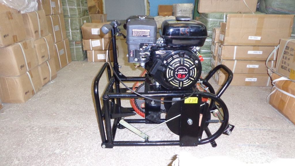 A Chinese-made engine is installed on the structure. It bears the ECO mark. The power plant is of good quality. There are no complaints in the reviews. The design is considered universal. The set includes special equipment.It can be used to change the functions and work performed by the motorized winch.