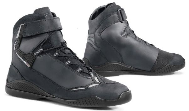 Motorcycle boots with lace-up and Velcro straps with a 3-density rubber sole that prevents the feet from slipping. The body of the model is equipped with a water-repellent impregnation. The ankle is protected by TPU material. The 2nd density insole protects against impacts and the lining is soft polymer with memory effect.
