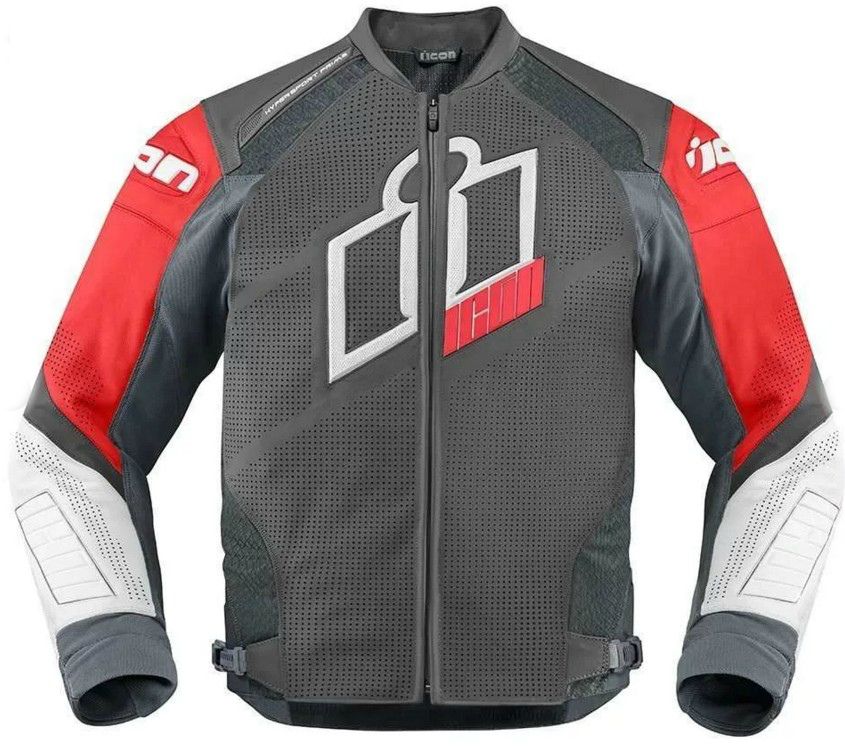 A bright and stylish motorcycle jacket. The model is made of coarse-grained leather with a thickness of 1.2-1.4 mm. Extensive perforations, mesh inserts and ventilation panels save from overheating. A removable textile heat-insulating lining is provided for travel in cool weather. Elasticated sleeves provide comfort and freedom of movement. Available in white, black, red, blue, green and gray.