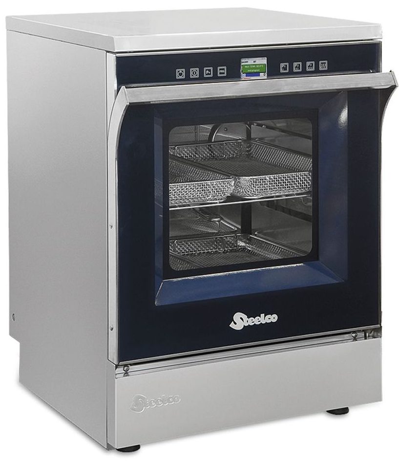 The special design of the product allows for economical use of water. The process of disinfection of products is carried out using steam treatment. Also a feature of the device is the self-cleaning function during operation. All processing steps are carried out automatically and do not require experience and save staff time.