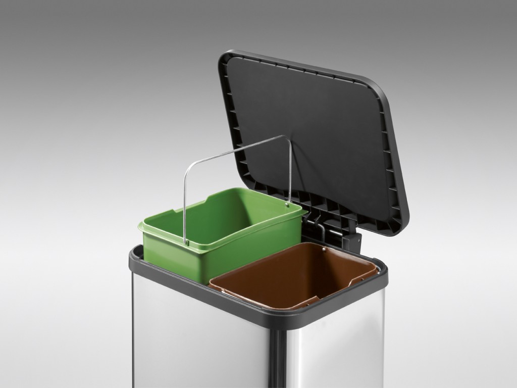 The sorter is an ergonomic and compact device that can be aesthetically positioned in a cabinet or drawer. The product can also be attached to a swivel basket or kitchen facade. Another great advantage of sorters is the division of the space into separate sections, so that you can organize a separate collection of waste.