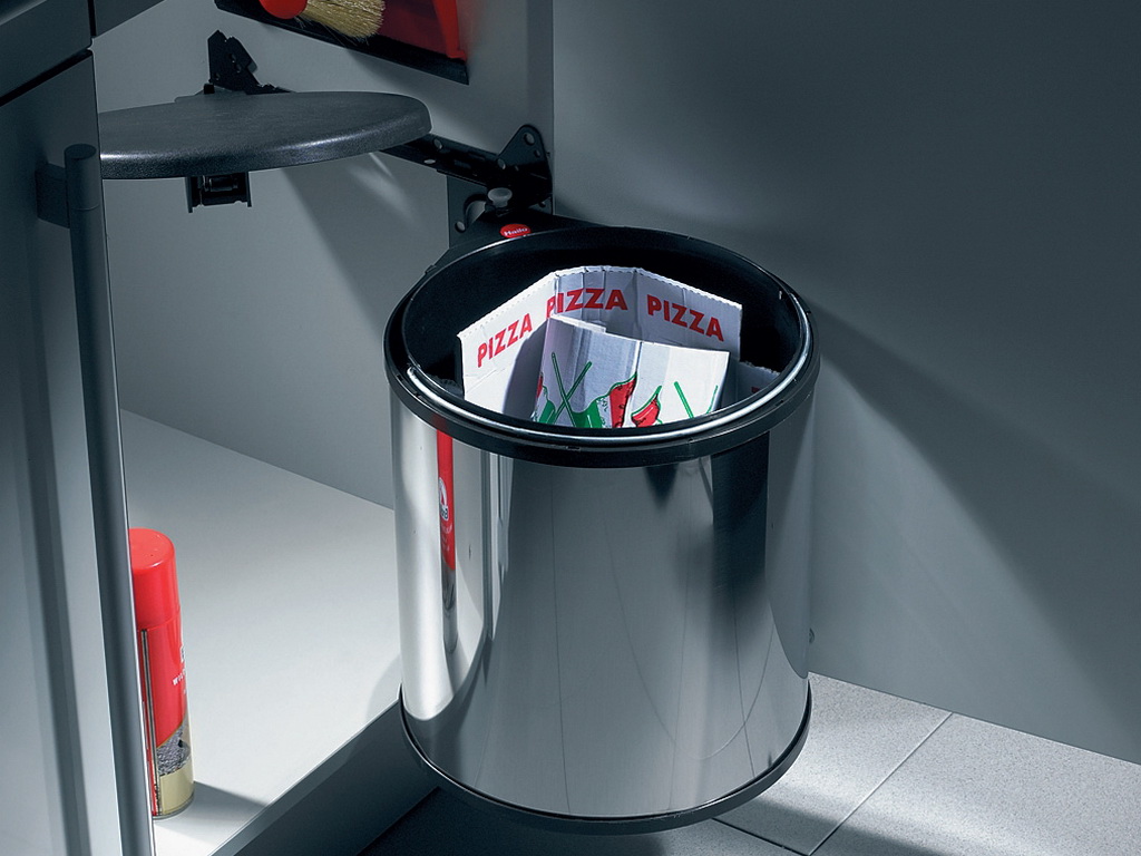 Retractable waste bins are most handy for the kitchen. They are hidden out of sight, do not take up much space. They are put in a module specially designed for this. As needed, they "leave" from under the table top, after which they just freely hide back.