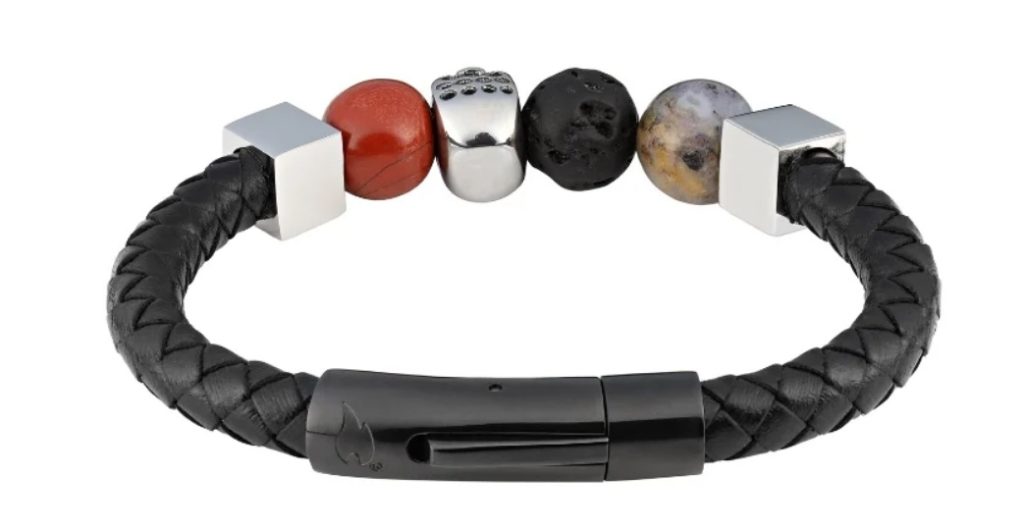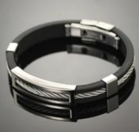 An original accessory for men made of steel and rubber.
