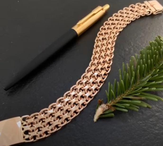 Bracelet made of red gold has 585 assay value, domestic production.