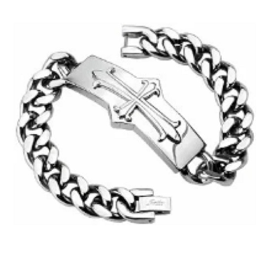 This steel jewelry for a man is made with a Celtic cross applied to the insert.