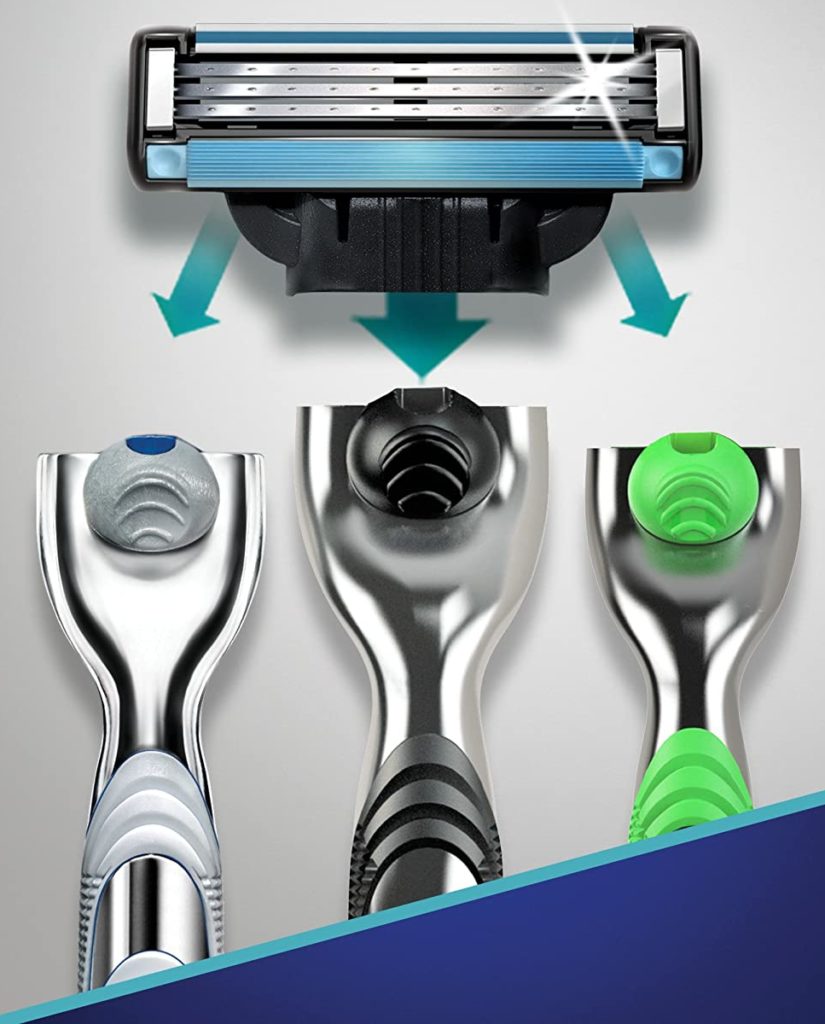 Provides a close shave, has 3 blades suspended on springs for a comfortable shave, lubricating indicator strip.