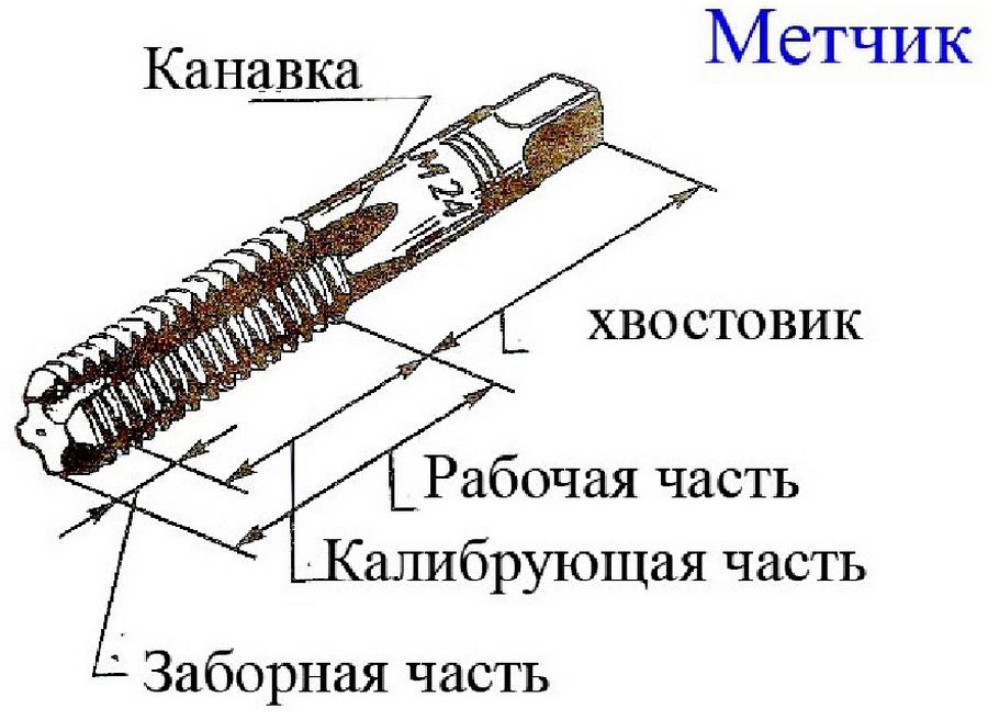 - Locksmiths - they have a square shank, used by hand. They come complete with a collar, through which rotation and threading occurs. The set contains two taps, slightly different from each other in diameter, and where each removes only its own share of the allowance from the surface of the hole being machined. The tools in such a set differ in the number of lines that are engraved on the shank or stamped in the same place (the most accurate one is indicated by three lines, the intermediate one - two, and the rough one - the only one).