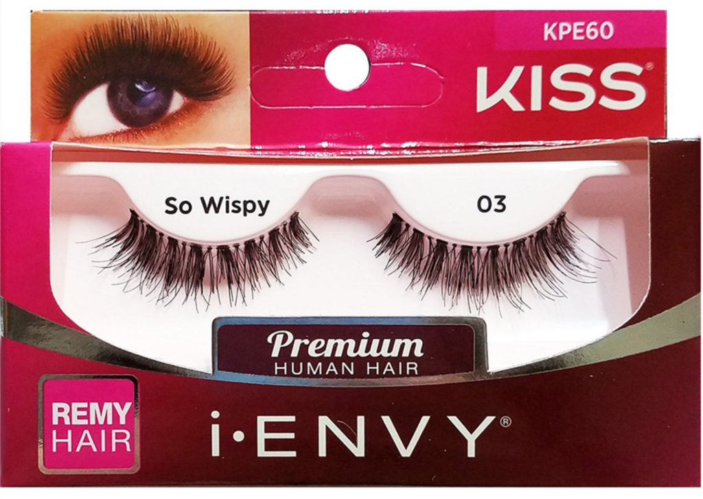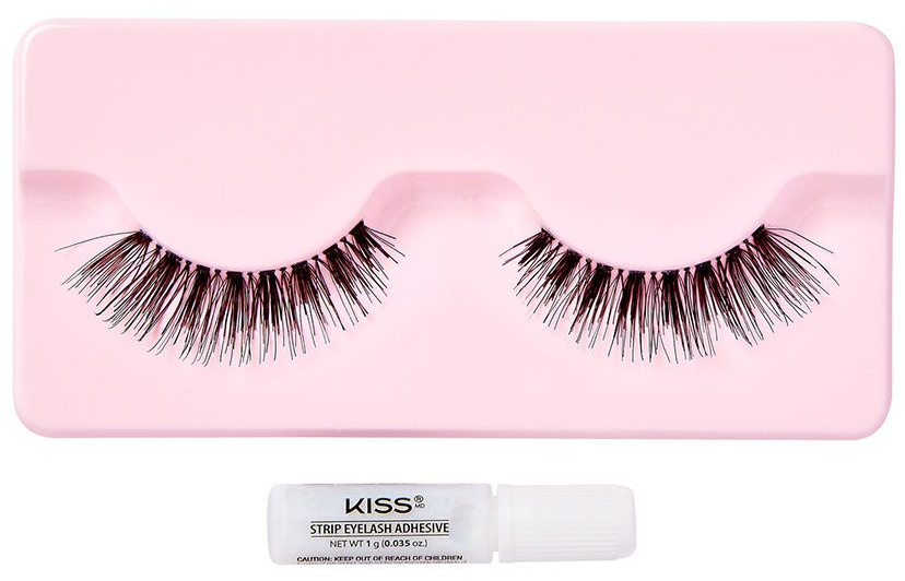 A high quality premium product made from thermally treated real hair. Made by an American cosmetics manufacturer. To create density and natural splendor, the hairs are arranged in bunches on the ribbon. The set includes glue, when applied it has a white color, but when it dries it gradually becomes transparent and does not leave noticeable marks on the skin. Kiss I Envy Premium can be applied repeatedly, up to 10 times, if carefully removed and immediately cleaned of glue. In addition, they can be tinted with ink. The average cost is 500 rubles.