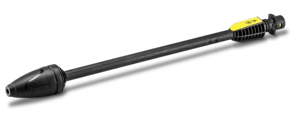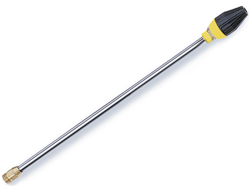 This model of a mud nozzle with a nozzle is presented by German manufacturers. In appearance, it resembles a spear with a stainless steel shaft. Thanks to the high outlet pressure of 220 bar, the device effectively copes with high levels of dirt, paint, moss and mold.