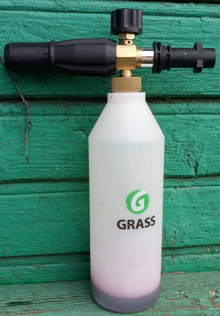This Russian-made model is a foam generator for household high-pressure washers. It has excellent compatibility with Karcher products. The nozzle is used for non-contact cleaning of any vehicle by forming an active foam mass. It is equipped with the function of adjusting the power of the jet and the angle of foam delivery. The set includes a 1 liter tank. All parts are made of durable plastic.