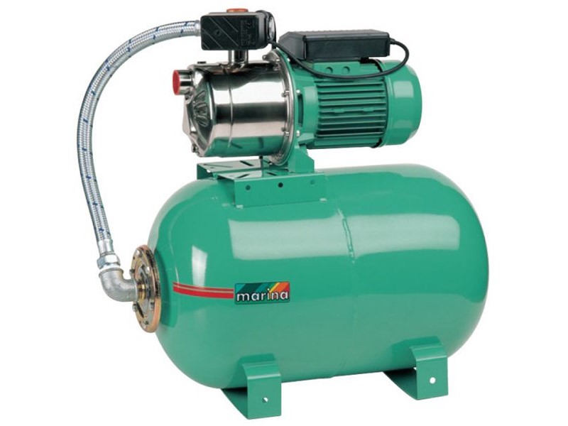 Marina's domestic water pumping station has received many positive reviews from customers. The solid model is endowed with a capacious 25-liter hydroaccumulator, quite suitable for use on uneven terrain, as well as for drawing water from a depth.Not every device can cope with this task. A huge plus is auto-control, which helps to monitor the filling indicators, and the presence of a special option that excludes overheating of the device.
