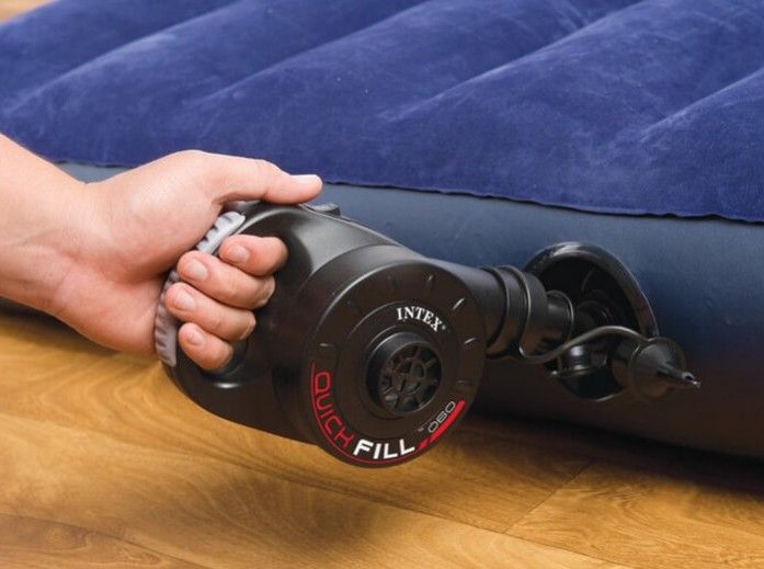 An electric pump, the body of which is made of durable plastic. It can be charged at home from the electrical network or from a car cigarette lighter. Convenient, lightweight and compact, suitable for inflating various inflatable things.