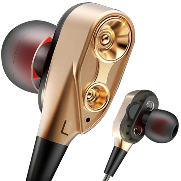 Double block wired headset looks fashionable and stylish. The seller advertises a stereo bass subwoofer model in four delicate colors: pink, white, gold, silver. On the wire there is a control unit for volume control and page flipping. With these buttons, you can switch to using the phone, answer incoming calls. HD quality microphone. Audio jack of standard class and size - 3.5 mm. The headset can be used while exercising in the gym or outdoors. Bass is present.