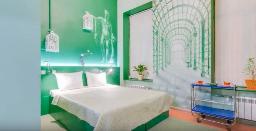 Bright colorful decoration and unusual design of rooms on two levels, minimalism and functionality of the atmosphere make the hotel popular among tourists who are vacationing with families. Different themes make each of the 14 rooms unique (Roofs of Petersburg, Scarlet Sails, Pushkin, Summer Garden, Sea Glory, etc.)