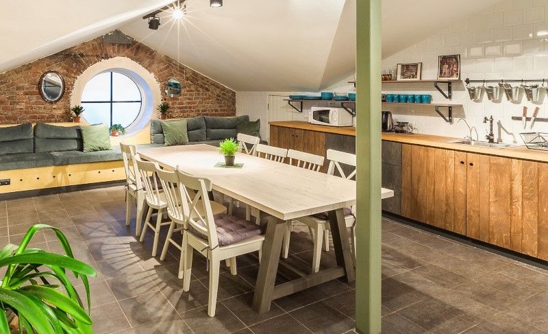 One of the most popular inexpensive mini-hotels in the city within walking distance from Nevsky Prospect. Occupies the attic floor of a three-story residential building. Offers 32 rooms with bathroom and toilet, shared kitchen, living room. The reception, located one floor below, is open 24 hours a day. The mini-hotel offers bicycle rental, luggage storage, unlimited tea, coffee, spices. The loft style is visible in every detail of the interior and the overall design of the hotel.Guests note the polite, friendly staff, cleanliness and comfort in the rooms, a well-equipped kitchen with a huge dining table and a soft sofa along the entire length of the wall. The living room has comfortable armchairs, plasma TV, shelves with books and magazines, board games.