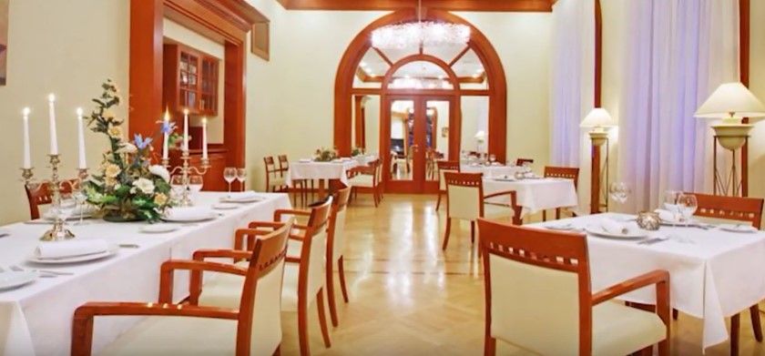Affordable prices in the presence of full services for clients have gained immense popularity of the hotel. Marble columns, frescoes, mosaics, twisted stair railings make the design luxurious and elegant. The unique spacious rooms with high ceilings, none of which are repetitive, are well equipped with: