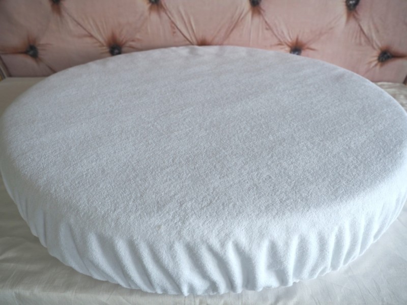 It is a special model for a cot with an oval mattress measuring 125x75 cm. Nice white color. The top layer is made of comfortable cotton terry. The inner material is polyester. It prevents moisture from penetrating the mattress while allowing air to pass through, preventing mold and greenhouse effects.