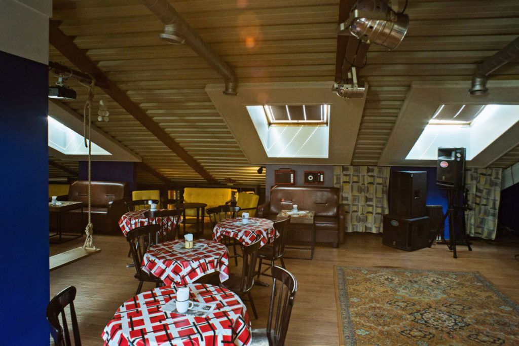 Nightclub "New Bar", located in the attic of a former garment factory, under the roof itself, is suitable for all ages and tastes. The interior is a mixed 50s American and student dwelling with loft details, where you can taste delicious cocktails, relax with soft music, watch movie legends and just flip through a book. The best music performers of the city and the country perform on the stage of the bar, jazz jam sessions are held on Tuesdays, in which guests from other cities and foreign countries take part.