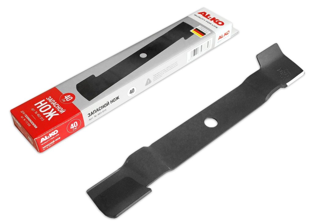 The blade of German production has shown itself well in use due to the high-quality material of manufacture. The stainless steel is powder coated in red. The blade is 37 centimeters long. The blade fits the PowerMax 37 E and does not require an adapter for compatibility with other mowers. The package includes instructions on how to install and sharpen the blade.