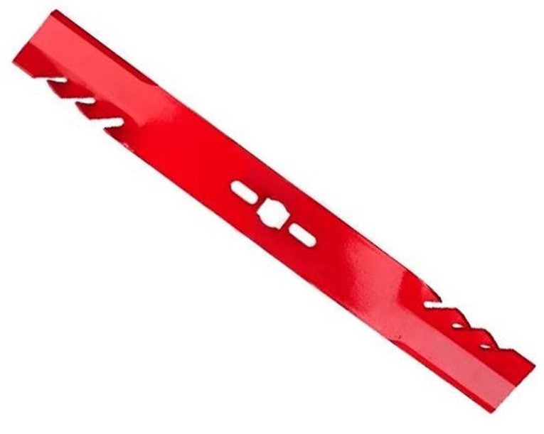 Some experts believe that buying mulching attachments is a waste of money and it is better to buy a cutting element with the same ability. The most popular and inexpensive model of such cutters is presented by the DDE manufacturer. It is made of steel, painted red. In order to chop the grass, the knife has special cutouts on both sides.
