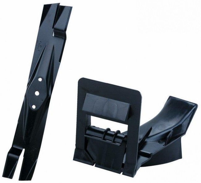 The package includes a cutter and a mulch attachment. Both items can be used together or separately. The set is suitable for lawn mowers with a working width of 41 cm. According to the description on the manufacturer's website, it allows you to grind plants to a state that allows you not to remove residues from the lawn. They are evenly distributed over it and serve as fertilizer.