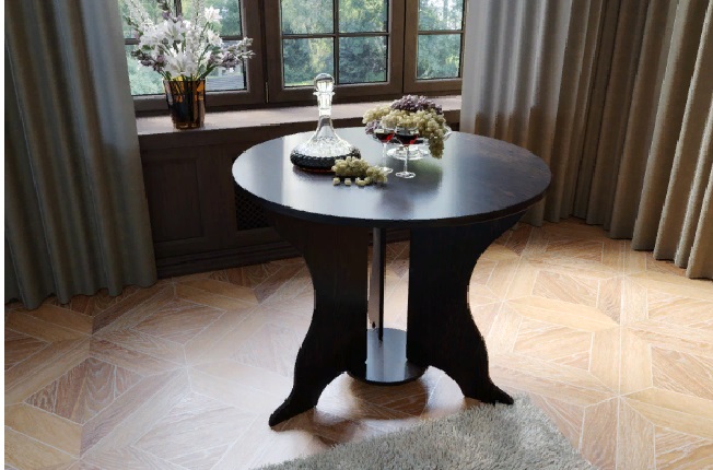 The round model Mark is an excellent budget option for small apartments. The table has 3 volumetric legs, but due to their curved shape, sitting at the table will not cause discomfort. A nice addition is a small niche at the bottom for storing small items. The product does not unfold, has dimensions: 74 × 85 × 85 cm, made of laminated chipboard. Furniture of a laconic style, basic color, will fit into any interior. The company offers to manufacture the product within 14 days from the date of the order request. Weight: 19 kg. Service life: 2 years. Price: 1990 rub. Available in two shades: milk and nut. According to buyers, the table is stable and comfortable.