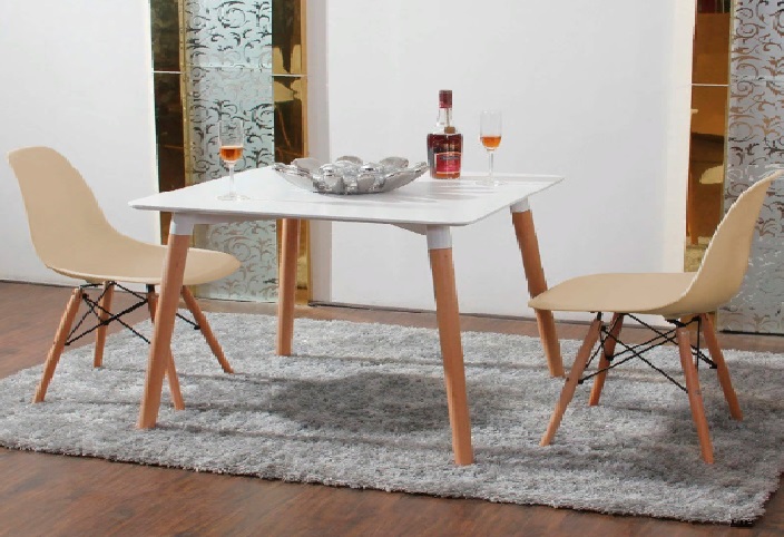 The Copine rectangular table is made of melamine coated MDF. Protects against impact, all kinds of damage - PVC edge. 4 classic legs made of solid beech, which speaks of their stability and strength. Thanks to high-quality materials, the white countertop is easy to care for, and is resistant to household and chemical substances. Table size: 120 * 80, suitable for a medium sized kitchen and seating 8 people. The minimalist furniture design was developed by Sean Dick, an American designer. Price: from 20 300 rubles. Available in 2 colors - walnut and white. Purchase through online stores is possible.