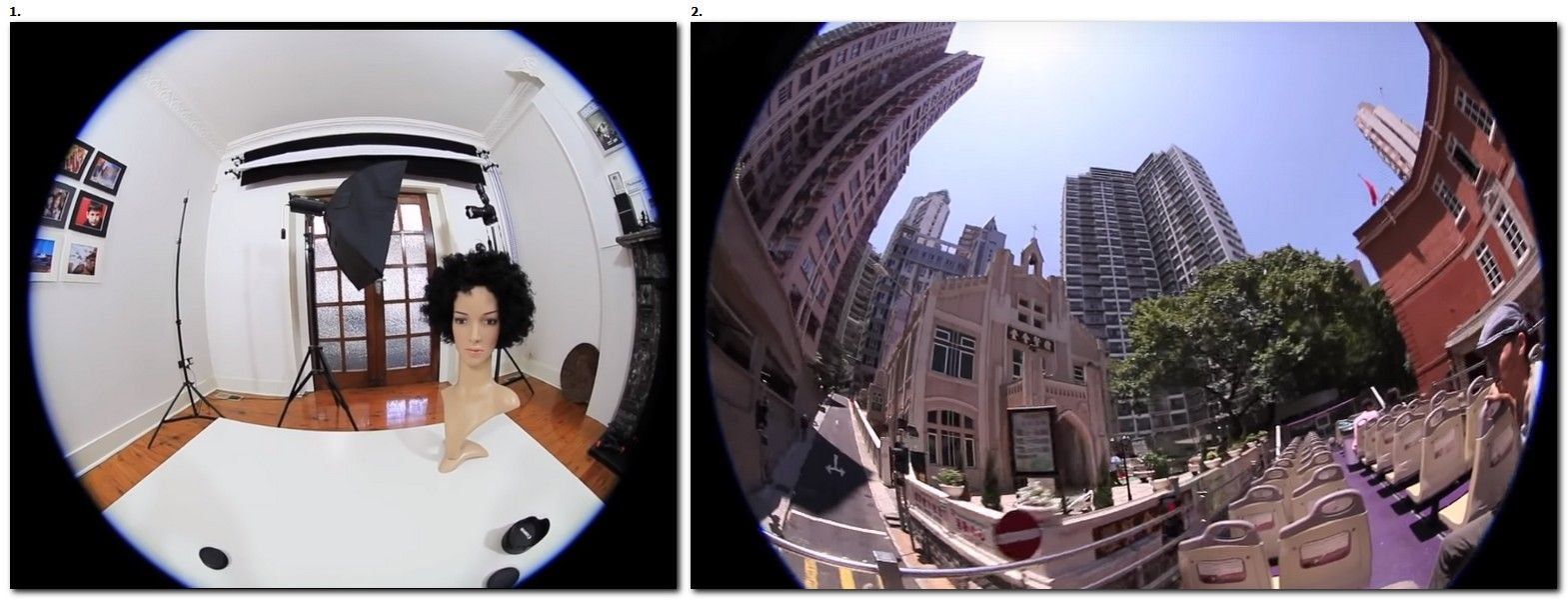 1. Focusing on the subject, 2. Frame from the video using the lens "EF 8-15mm f4.0 L Fisheye USM"