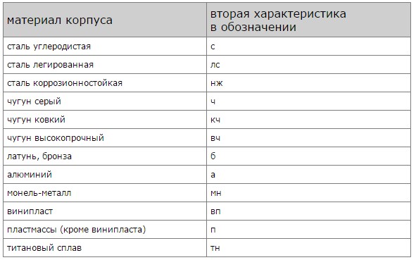 In accordance with the provisions of the Central Design Bureau of Valves, domestic products are designated with alphanumeric markings: