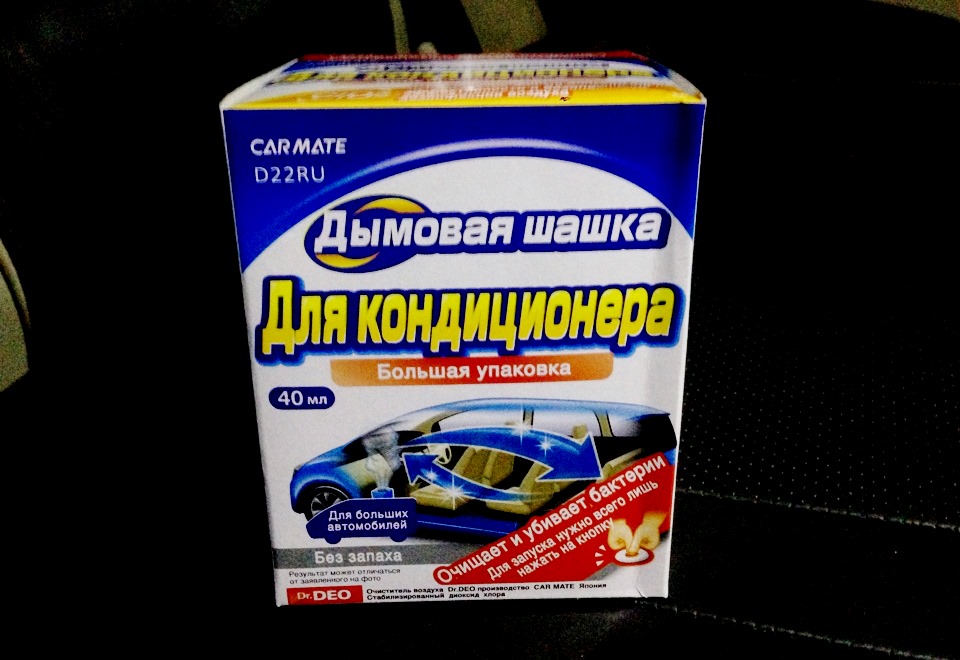 The principle of the checker is quite simple. The air conditioner is set to the internal circulation mode. The air should move towards the face. Temperature regime - minimum. Start the engine. The smoke bomb is turned over and a hole is made in its lower part in direct accordance with the requirements of the attached instructions. The button is pressed. The checker must be installed within 30 seconds. Otherwise, it will become very hot and complicate further actions.