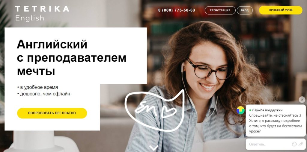 Tetrika conducts its classes on an interactive platform via Skype. There are professional Russian-speaking teachers at the service of students, the cost of one lesson with whom is equal to 690 rubles. Training with an expert or a native speaker will cost more - 1290 rubles. School leaders guarantee high performance and are responsible for the competence of teachers.