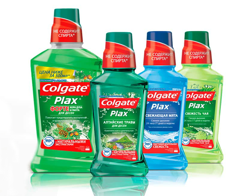 Another well-known brand of dental and oral care products. Currently, the most popular rinse aids of this brand are the Colgate Plax (C.P.) series. It includes 7 types of rinses, differing in composition and direction of action. The main active ingredients in this series are sodium fluoride and cetylpyridinium chloride.