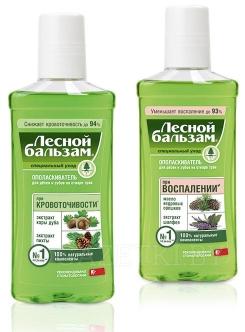 In addition to the named varieties, the manufacturer of "Forest Balsam" offers rinses, the name of which indicates the problem in which they are used: "For sensitive teeth and gums", "For bleeding gums", "For inflammation of the gums."