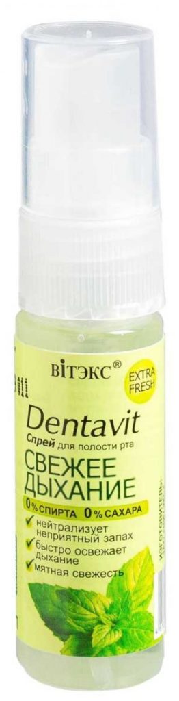 An inexpensive product that is used to eliminate bad breath. Effectiveness is achieved after the first spray. The result obtained is stored for several hours. It can eliminate even the most difficult odors such as onions and garlic. After use, a pleasant mint flavor remains. The spray can be used for diseases of the oral cavity, as it does not irritate the mucous membranes and makes breathing easier. The spray has a convenient packaging that you can always take with you.