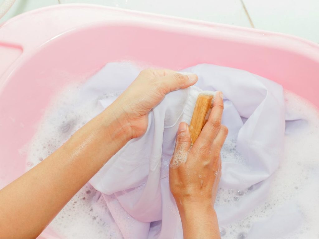 You have to choose among household chemicals, which contain chlorine, oxygen, or optical brighteners.