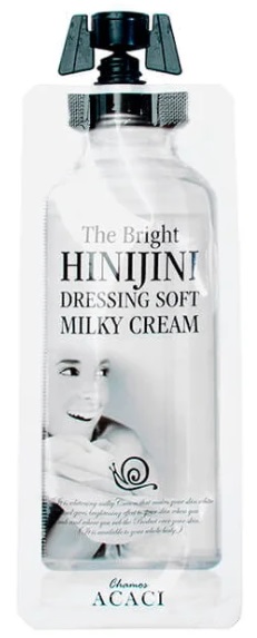 Such a cream from the South Korean brand "Chamos Cosmetic" contributes not only to skin whitening, but also to its active nutrition and restoration. Its main components are vitamin C, snail mucus, milk extract and arbutin. Thanks to the presence of snail mucus, you can easily maintain the youth and beauty of your face. With the help of vitamin C and arbutin, you can easily remove age spots and restore whiteness and radiance to the skin. It is worth noting that Acaci The Bright Hinijini Dressing Soft Milky Cream can be applied to any area of the skin, while the elimination of pigmentation will be natural, but at the same time intense.