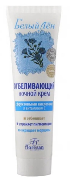 With the help of such a product from the Russian brand "Floresan" you can easily get even and radiant skin. As long as you enjoy your sleep, the cream will do its job. The composition of "White Linen" contains fruit acids, they will have an exfoliating effect on the upper layer of the skin. This will reduce the spot size. It also contains cucumber extract and vitamin C. These two components have a brightening effect. And for additional nutrition and hydration, the manufacturer has included flax seed extract in the composition. With White Linen you will not only remove pigmentation, but also get rid of fine wrinkles.