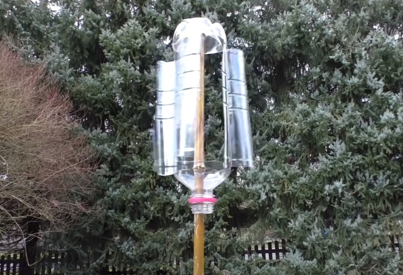 What the device looks like: a plastic bottle is put on the pin. In it, rectangular slots are pre-made with the letter "P" and are bent to the outside. Thus, a primitive anemic is created.