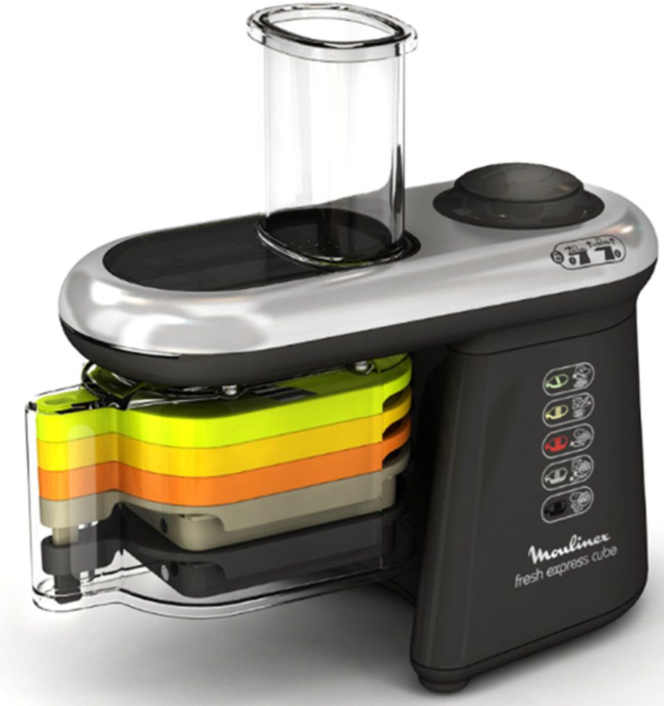 | 2 | "Multi-cutter Moulinex Fresh Express Cube DJ905" | Cost from 8900 rubles | Power - 280 W; Number of speeds - 2; Attachments - 5 pieces: a knife for cutting into cubes, strips, shredders, coarse and fine grater; Country of origin - France; Product material - high-strength plastic. | the design of the multi-cutter is made in such a way that you do not need to select a special bowl for cutting under it, you can substitute any necessary container; knives are attached using a special magnetic holder, which significantly speeds up the process of assembling the device or changing nozzles; unlike many similar devices, this multi-cutter copes well with cutting boiled vegetables; stylish design. |