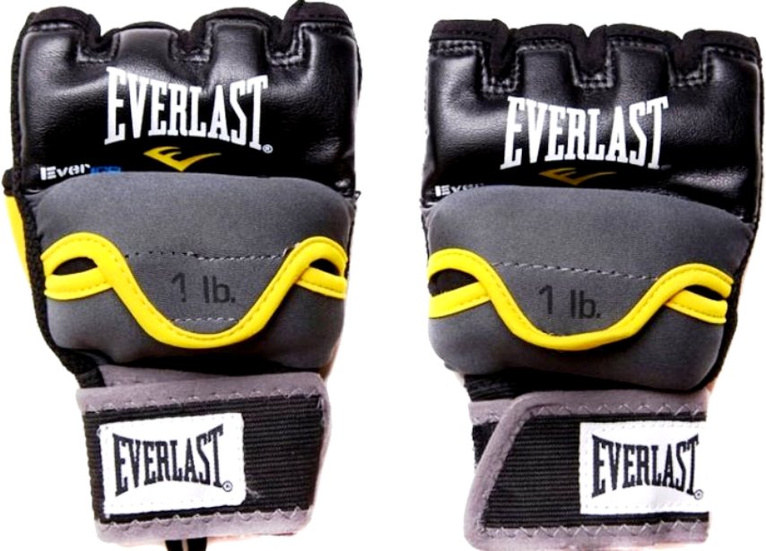 Weighted Gel Everlast brand with Velcro weighing half a kilogram. Sizes: S / M and L / XL. Buckle tapes help fit any hand and ensure a perfect fit around the wrist. On the back side, a special pocket is provided, where a removable weight of 450 g is located. A successful model for practicing blows with a fictional enemy. It is much more comfortable than dumbbells or belt weights. Can be used when jogging.