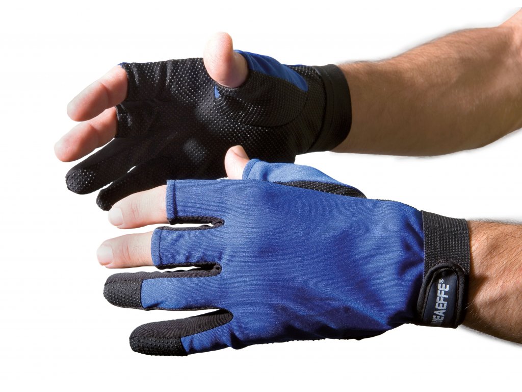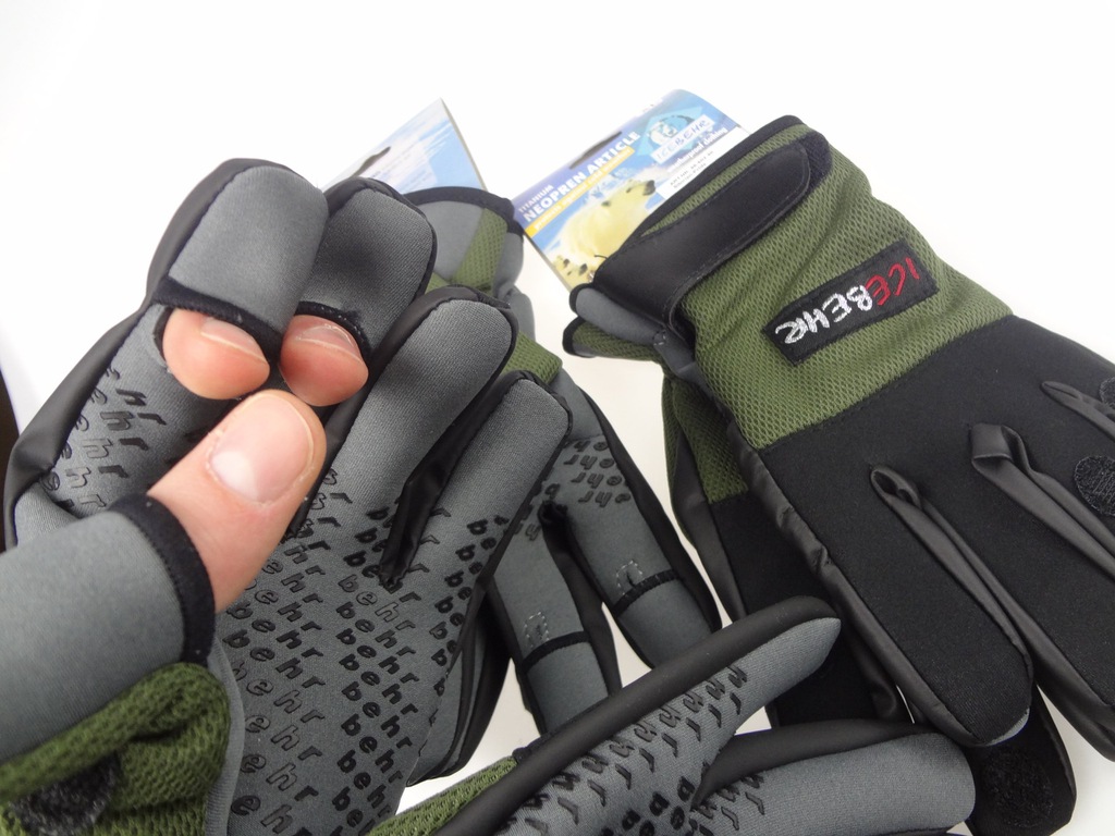 Outwardly, they look more like classic mittens, but divided into three parts so that it is convenient to carry out various processes: to remove a fish from the hook, to grab individual objects. Gloves are voluminous and very dense, do not have folding parts. To prevent them from falling off the hand, there are special straps on the wrists for fastening. These gloves can be used in very low temperatures.