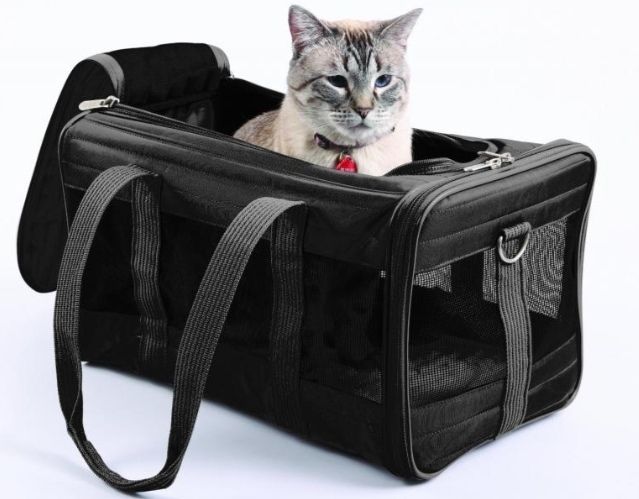Cat carriers are available in a variety of materials, designs and functionalities. Textile carriers are equipped with special mesh inserts and zippers on one or more sides. In appearance, such carriers resemble rigid-frame shopping bags.